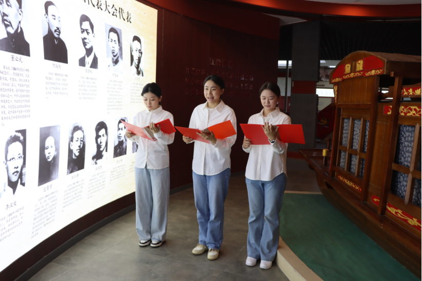 展馆共分为红船精神、井冈山精神、延安精神、长征精神、西柏坡精神五个展厅。齐越传媒学院教师党支部党员、师生联合党支部党员和党外知识分子之家成员在展览馆讲解员的带领下,有序参观了各个展厅,学习了党的光辉历史和奋斗历程。党员师生面对党旗,重温了入党誓词。齐越传媒学院学生朗诵了《永恒的丰碑——献给抗战与反法西斯胜利80周年》。
