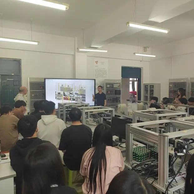 5月17日,庄红元现场教学,为首届微专业学生讲解《智能控制》课程“新技术”板块。期间,杨弟平全程指导。