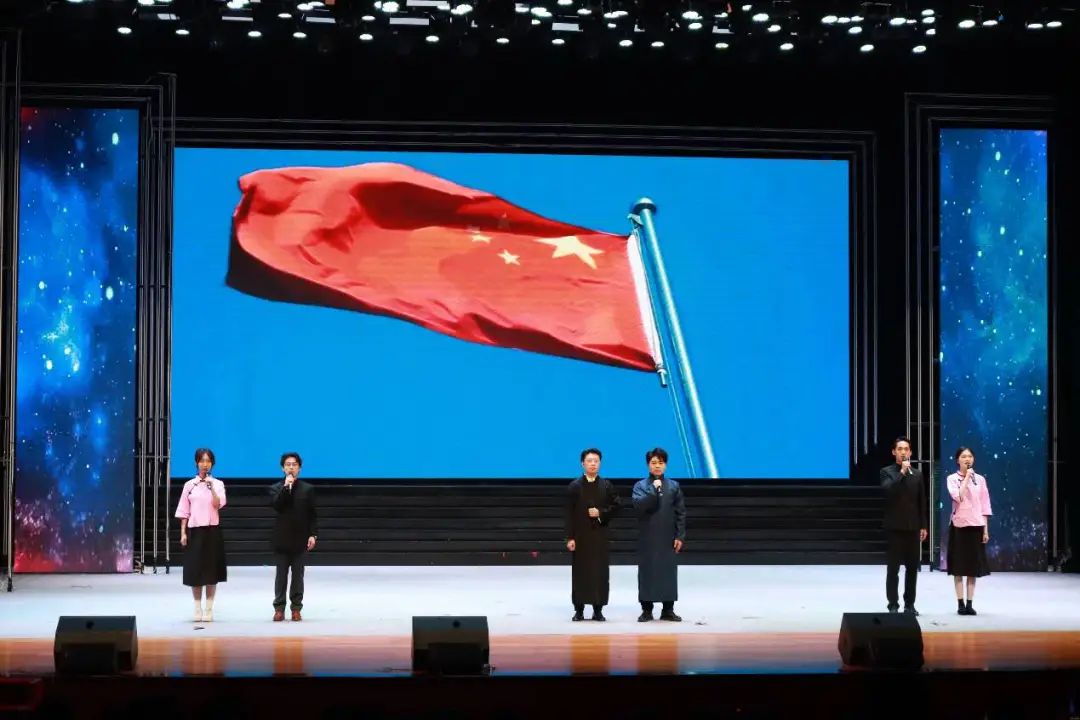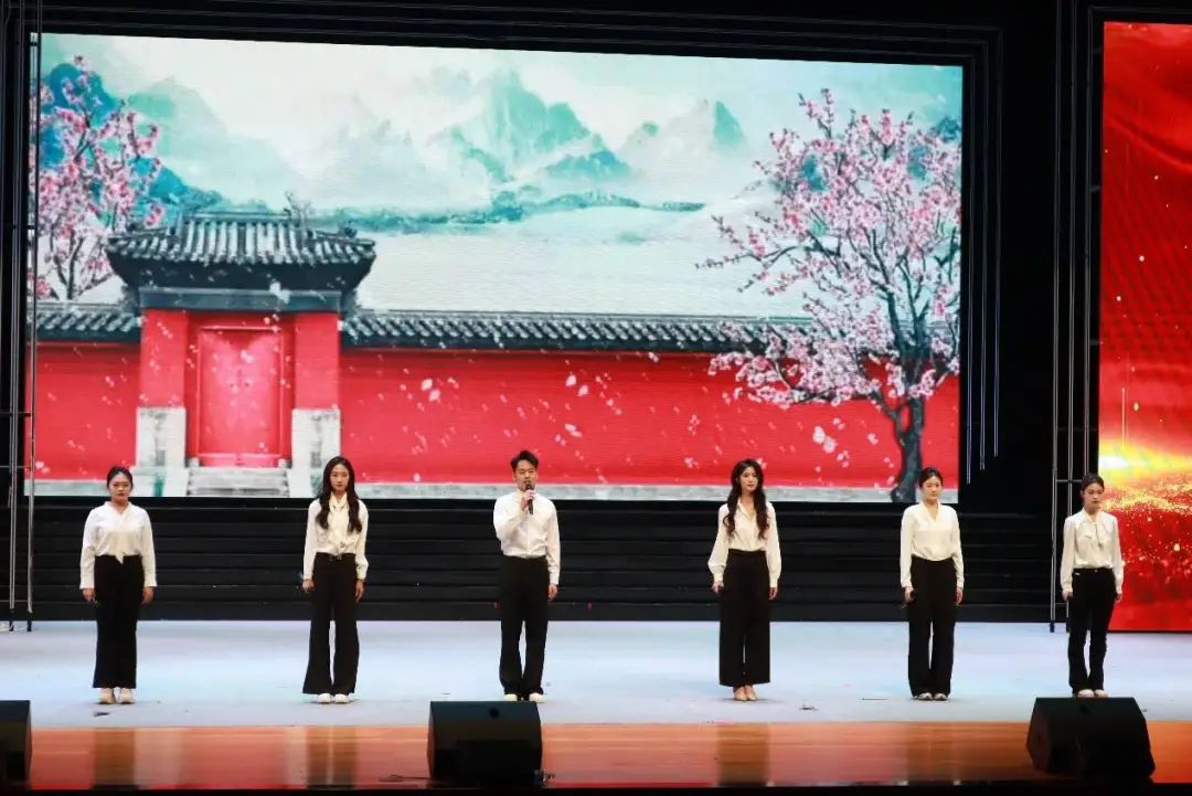 当《日本投降》的新闻播报声响起,“和平曙光·胜利与希望”篇章正式开启。庄重肃穆的播报,重现了历史转折的高光时刻,现场爆发的热烈掌声,是对胜利的致敬,更是对先烈的告慰。《不朽》与《人民英雄纪念碑碑文》的朗诵,以铿锵有力的节奏、饱含深情的演绎,将无数英雄的不朽功绩铭刻在每个人心中,传递出中华民族永不屈服的精神力量。
