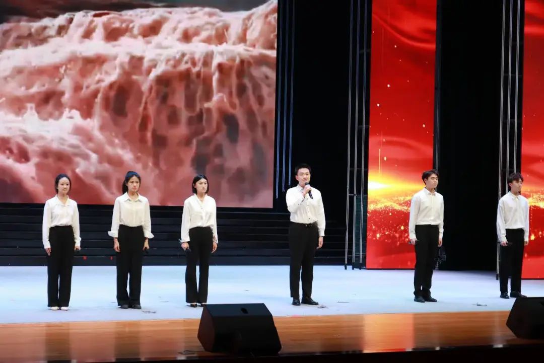 “英雄赞歌·奉献与牺牲”篇章中,《囚歌》以激昂的呐喊,诠释革命者宁死不屈的气节;《黄河颂》气势磅礴,将中华民族如黄河般奔腾不息的抗争精神展现得淋漓尽致。经典电影《英雄儿女》的配音片段,毕业生们用声音重塑英雄形象,一句句“为了胜利,向我开炮”的呐喊,点燃了全场的爱国热情。情景朗诵《赵一曼的家书》更是将英雄柔情与革命豪情完美融合,朗诵者以细腻的情感演绎家书内容,让观众看到一位母亲对孩子的深情眷恋,更看到一位革命者为信仰献身的伟大胸怀。