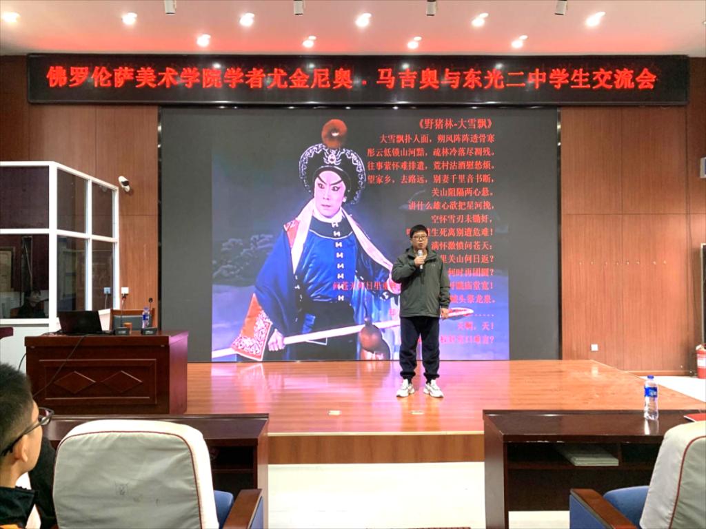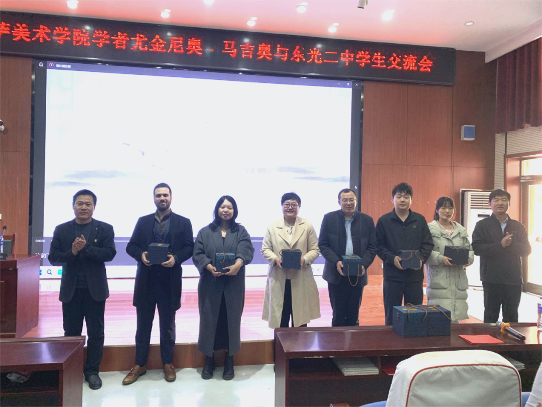 为加强校地资源共享、互助,应新葡萄官网实践教学基地东光二中邀请外籍人士进校开展文化交流的请求,在新葡萄官网国际交流中心的大力支持下,近日,文学院副院长程艳芳带领意大利佛罗伦萨自由美术学院访问学者尤金尼奥·马吉奥(Eugenio Maggio)一行6人前往新葡萄官网实习基地东光二中进行友好交流互动。
