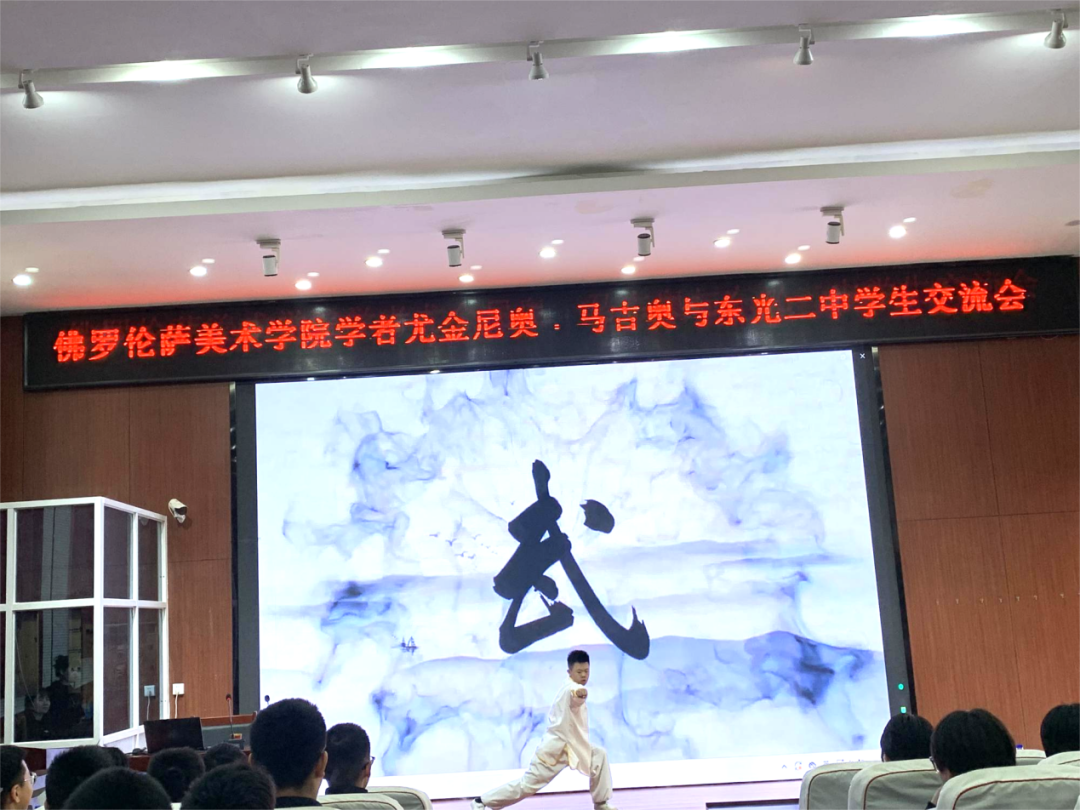 尤金尼奥·马吉奥(Eugenio Maggio)一行人参观了校园,了解了东光二中近年来的校园文化建设成绩。