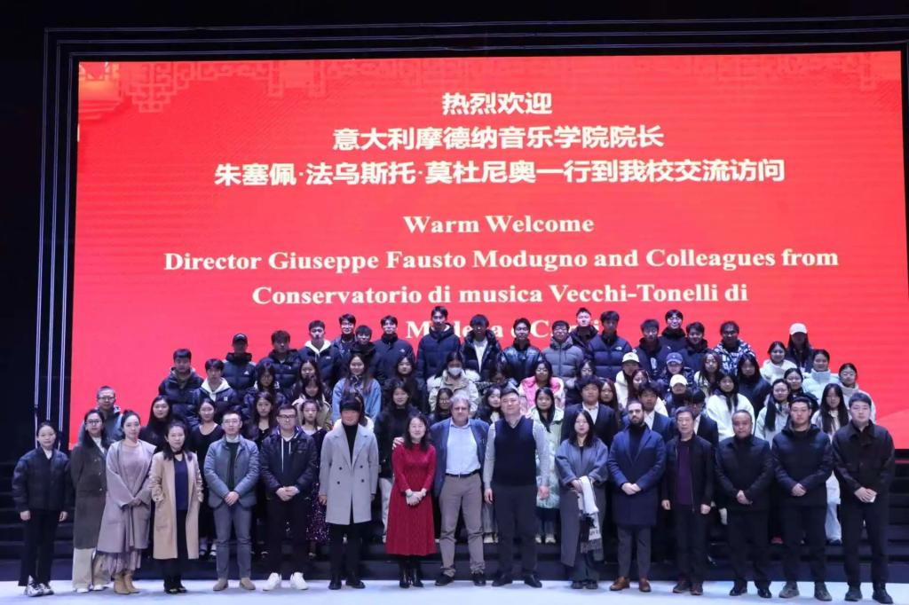 朱塞佩·法乌斯托·莫杜尼奥在致辞中详细介绍了意大利摩德纳音乐学院历史沿革和办学特色,期待推动两校在音乐、艺术等领域的资源互补与创新发展。