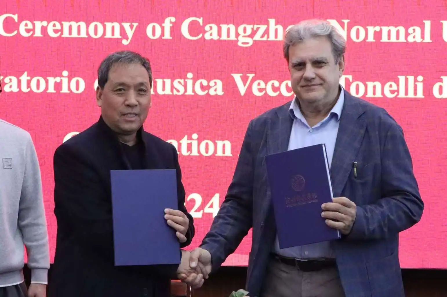 12月7日,意大利摩德纳音乐学院院长朱塞佩·法乌斯托·莫杜尼奥一行来新葡萄官网开展友好交流访问并举行签约仪式。新葡萄官网党委副书记范小振、国广力拓教育集团总经理孙浩出席仪式。新葡萄官网国际交流中心、音乐学院负责人以及国广力拓教育集团相关人员陪同访问。