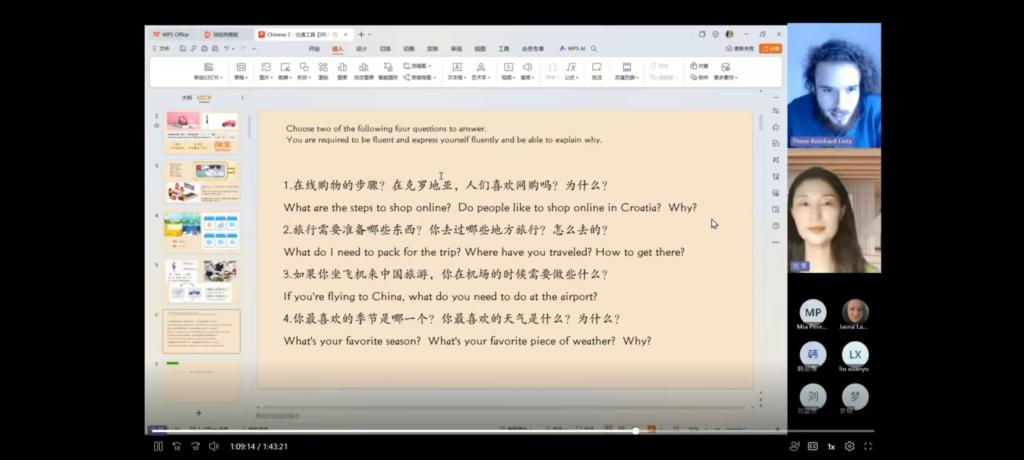 12月9日,新葡萄官网国际中文教学中心(克罗地亚)第七期课程在云端开展了中期检查,此次检查旨在保障课程教学质量,促进国际中文教育水平的持续提升。