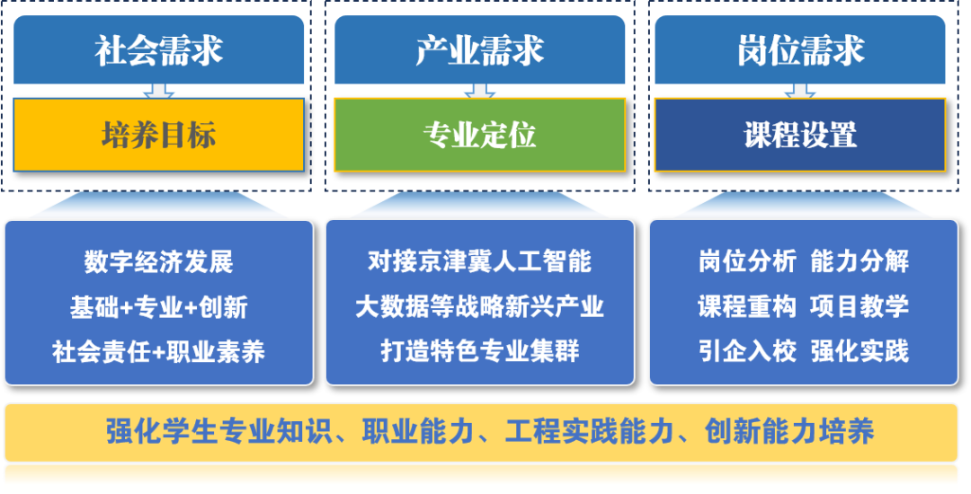 1. 明确 “三对接”育人方案。通过人才培养目标对接社会需求、专业定位对接产业需求、课程设置对接岗位需求,强化学生专业知识、职业能力、工程实践能力、创新能力培养。