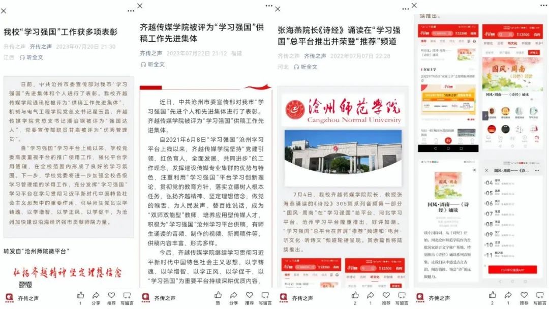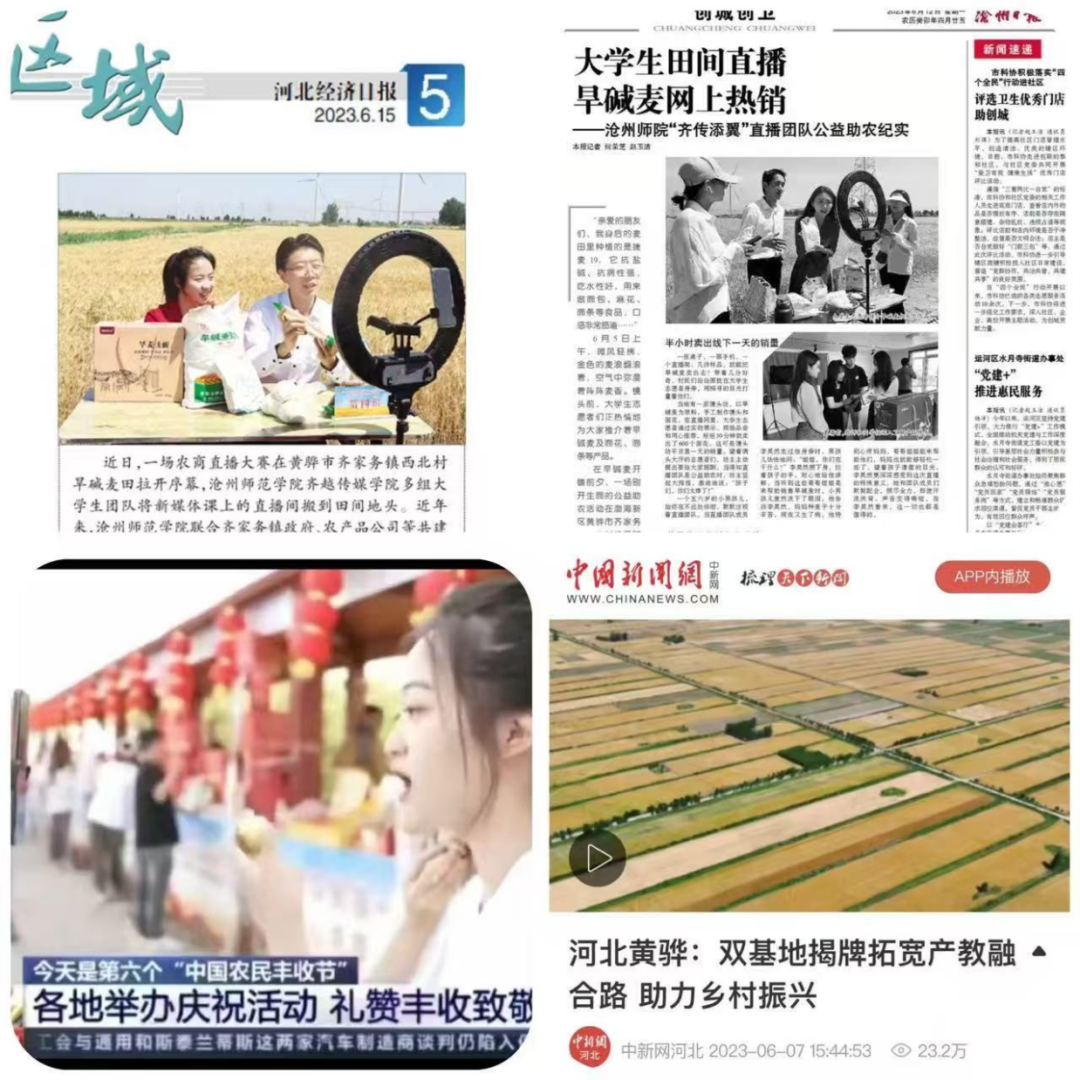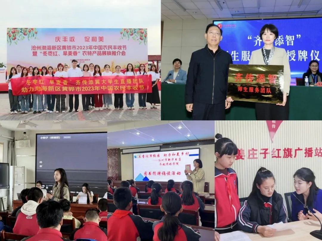 学院以专业群为依托,打造“齐传”系列品牌课程与项目,形成“一专业一品牌,一课程一特色”的发展格局。“齐传添翼”新媒体实战项目聚焦乡村振兴,开展旱碱麦直播助农活动,新华书店正版图书销售活动,被人民日报、央视频、长城网、凤凰网等主流媒体报道;“齐传添智”师生服务团队在大运河沿线老字号品牌创新、非遗传承与保护等方面深耕,赋能区域品牌升级发展;“齐传红石榴”志愿服务团队以铸牢中华民族共同体意识为宗旨,开展“双语播音培训”“民族文化传播”等活动;“齐传添亮”团队以“用专业传递温暖,以声音点亮光明”为宗旨,充分发挥传媒专业优势,创新开展“带盲童看电影”等公益项目。