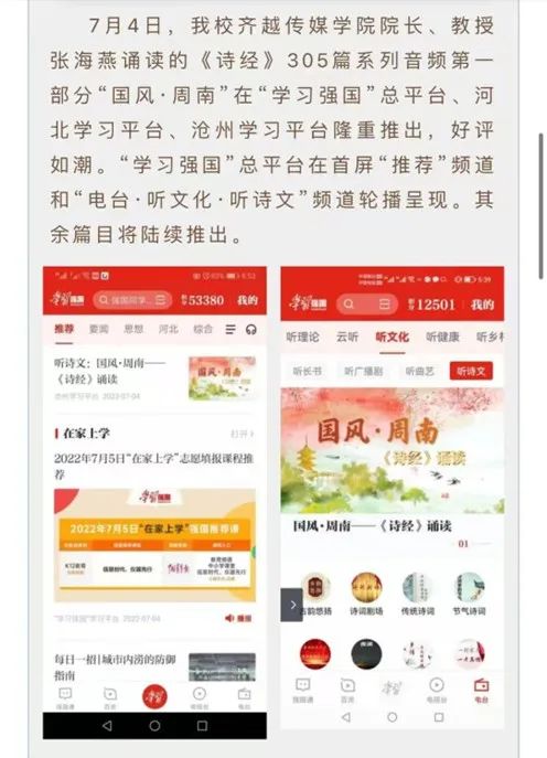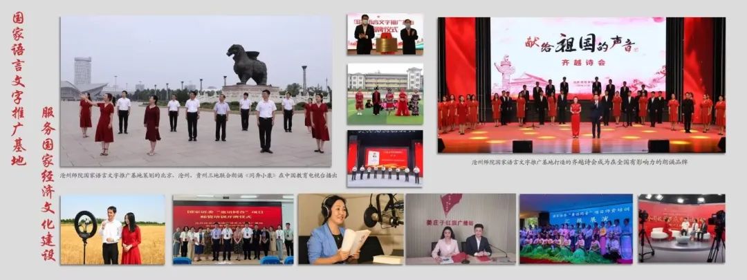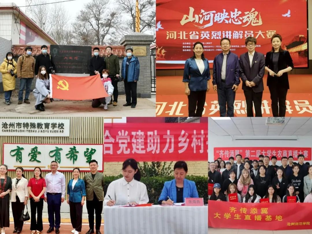 与长城新媒体、沧州广播电视台、沧州报业集团共建产学研合作基地,承担“大运河文化带传播”“乡村振兴品牌建设”等课题18项。为市人大、政协设计“一图看懂人大工作报告”,为河北省军人事务局等单位制作专题片,多次收到表扬信;与12所中小学开展“语言文字帮扶计划”,开发校本课程《诗经诵读指要》,培训教师300余人次,形成“高校—政府—中小学”协同育人网络。