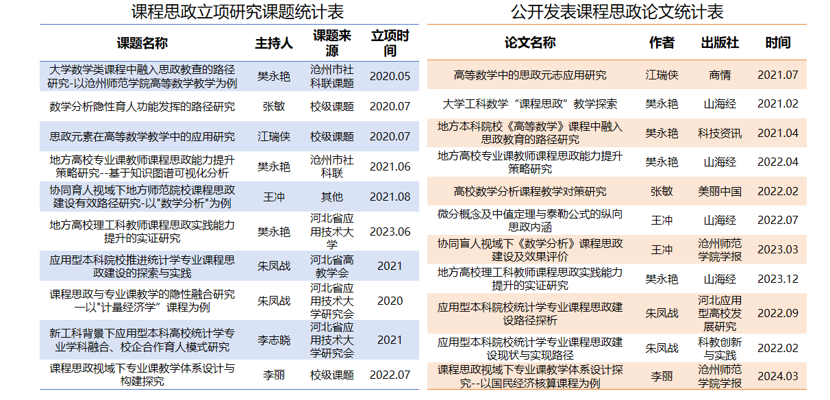举办课程思政教学成果展,用歌曲、绘画等形式将课程思政教学收获表达出来。党员干部带头组建校级课程优秀教学团队和科研创新团队。多名老师在课程思政方面教学成果丰硕。