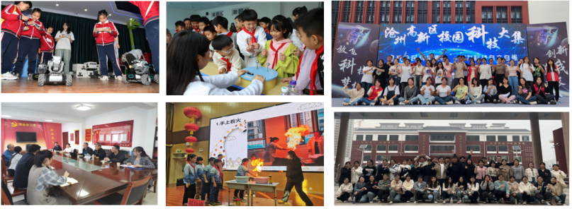积极构建UGS三位一体协同培养机制,与区教育局、市科协、多所中小学建立合作关系。获批沧州市首批青少年科技教育示范基地,与全国科学教育实验校 重庆路小学、孟村代林小学共建科技教育实践基地,学院科学创新实验室目前已接待参观人员8000余人次。科学教育专业师生通过“展示+互动”的方式,前往广州路小学等15所学校进行讲座和科技展演,得到了社会各界的广泛认可与关注,相关活动被河北日报和沧州晚报等主流媒体报道,探索构建“迎进来—走出去—在一起”的高校立体化赋能中小学科学教育模式。