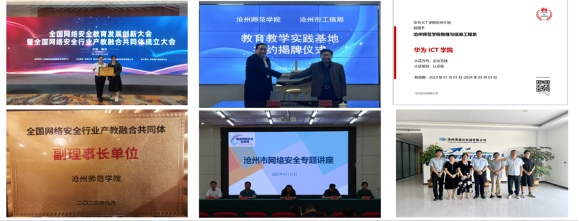 学院加入全国网络与信息安全产教融合共同体,与市委网信办、工信局签署合作协议。获批华为认证级ICT学院,发挥现代产业学院作用,助力县域特色产业发展。学院师生连续三年参加了市委网信办组织的“阳光护网”系列活动,并到沧县、孟村等6个县市区进行网络安全培训讲座。