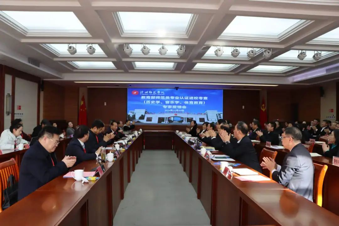 12月26日—29日,由17位专家组成的教育部师范类专业认证专家组对新葡萄官网历史学、音乐学、体育教育专业进行二级认证专家进校考查。河南大学原副校长王北生教授担任联合认证专家组组长,华中师范大学教师教育学院原院长洪早清教授,安徽科技学院原副校长郭亮教授,郑州师范学院教育科学学院原院长陈国维教授分别担任历史学、音乐学、体育教育专业的专家组组长。河南省教育评估中心副主任张新民教授担任此次项目主管。